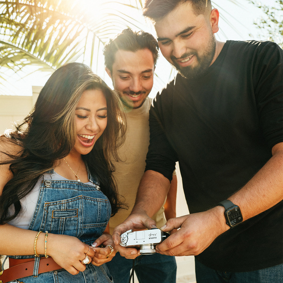 FUJIFILM X half is built for sharing. It’s so easy to use that it can be passed around to friends and family to preserve memories while you’re together – but it’s simple to share the results too. The camera connects directly to select instax™ printers (sold separately), so you can hand out prints seconds after the image is made, or share images and video from the dedicated X half app.