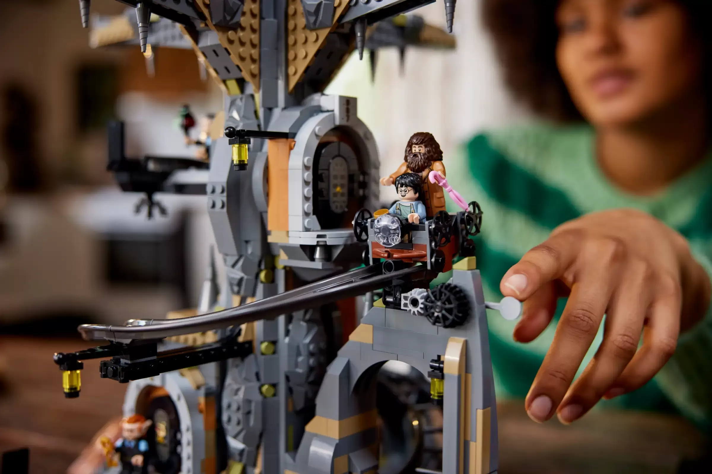 Ride with Hagrid down the spiraling track to the bank��s vaults