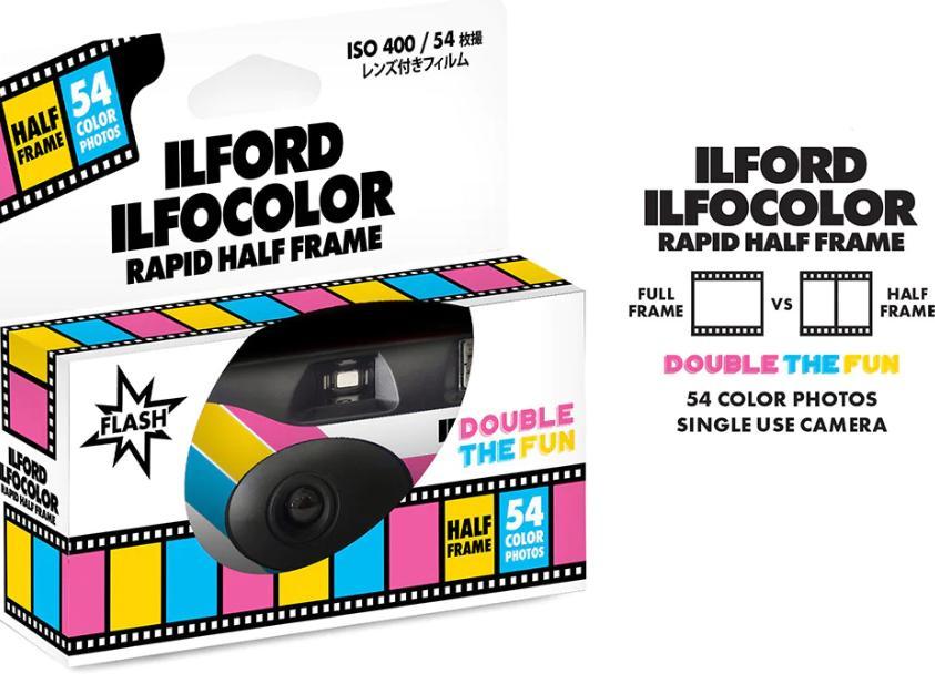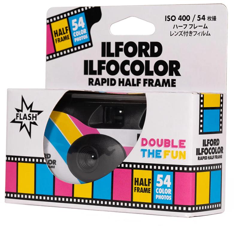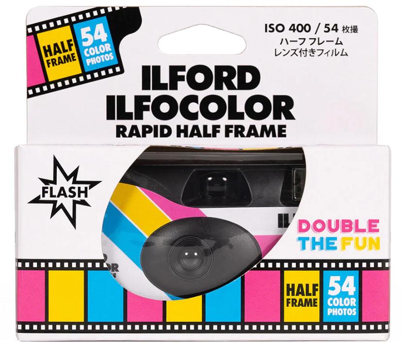 The ILFORD ILFOCOLOR Rapid Half Frame camera is pre-loaded with 35mm 400 ISO film and produces 54 exposures. As exposures are in portrait format (with the camera held conventionally), the ILFOCOLOR Half Frame makes for easier viewing of scanned photos on portrait-oriented mobile devices.