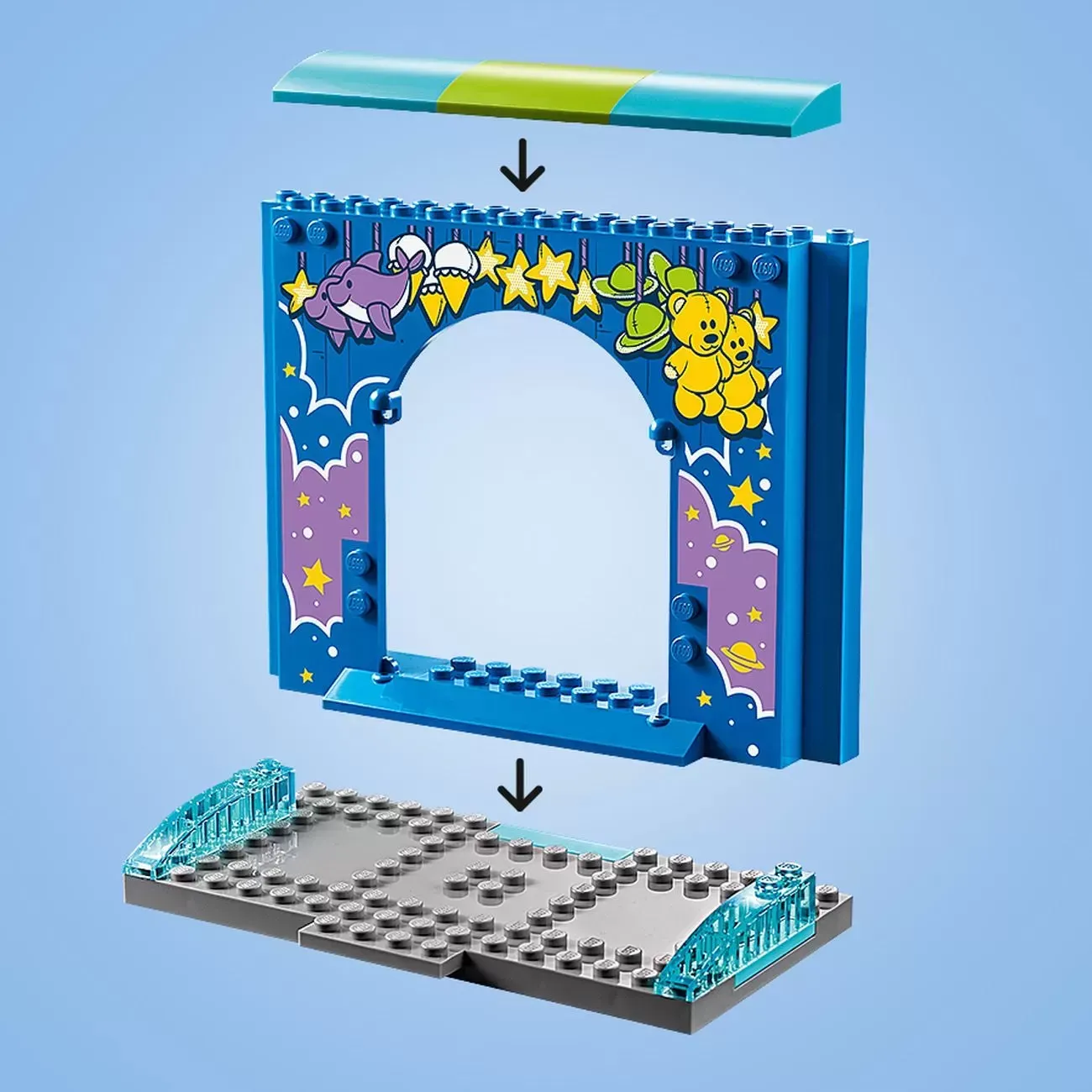 Share the excitement and joy of a carnival with your child, with Disney Pixar's Toy Story 10770 Buzz & Woody's Carnival Mania LEGO 4+ set! This action-packed play set is specially designed to be fun and easy for preschoolers and smaller children, featuring a colorful carnival shooting game with a large sign and laser cannon, plus a special Starter Brick baseplate that gives first-time builders the experience and pride of constructing buildings, vehicles and more on their own. This fun preschool toy building set also includes a spinning Terrorantulus ride with adjustable arms, 2 bumper cars with Starter Brick chassis and an ice cream shop with register, table and benches and a sign. The included simple guide to build and play will also help your young carnival visitor understand the purpose of the building steps and grow their imagination and confidence for the perfect start to easy LEGO brick building in a familiar Toy Story setting. Includes Woody, Buzz Lightyear and Bo Peep minifigures, plus Ducky and Bunny LEGO figures. ?LEGO Model Number: 10770 ?Age: 4+ years ?Pieces: 230 ?LEGO 4+ sets are made specifically to be fun and easy for youngsters, to grow their confidence, with simple steps for an easy start to LEGO brick building. ?Includes 3 Toy Story character minifigures: Woody, Buzz Lightyear and Bo Peep, plus Ducky and Bunny LEGO figures. ?Features a carnival shooting game, decorated rocket elements that can be knocked down and separate, working cannon, plus a Starter Brick baseplate and decorated wall plate to get your child building and playing quickly with LEGO bricks in a fun Disney Pixar Toy Story world. Also includes an ice cream shop with register, a table and benches. ?This cute set also includes a Terrorantulus ride that turns and has adjustable arms, plus 2 bumper cars with Starter Brick chassis. ?Accessory elements include 6 studs, crate, 3 decorated rocket elements, large ice cream, 2 small ice creams, ice cream sundae, ice cream spoon, bucket and Bo Peep's shepherd crook. ?Help your child replay exciting Toy Story movie scenes or make up their own stories. ?LEGO 4+ introduces your child to a wide universe of their movie favorites, TV characters and everyday heroes. ?LEGO 4+ play sets were previously branded as LEGO Juniors and can be built together with all LEGO construction toys for creative building. ?This Toy Story 4 creative play set makes an ideal gift for preschoolers and youngsters. ?Carnival shooting game measures over 3" (10cm) high, 4" (12cm) wide and 1" (3cm) deep. ?Bumper cars each measure over 3" (9cm) high, 1" (3cm) long and 1" (3cm) wide. ?Ice cream stand measures over 4" (11cm) high, 2" (6cm) wide and 3" (8cm) deep. ?Terrorantulus ride measures over 3" (8cm) high, 7" (19cm) wide and 7" (19cm) deep.