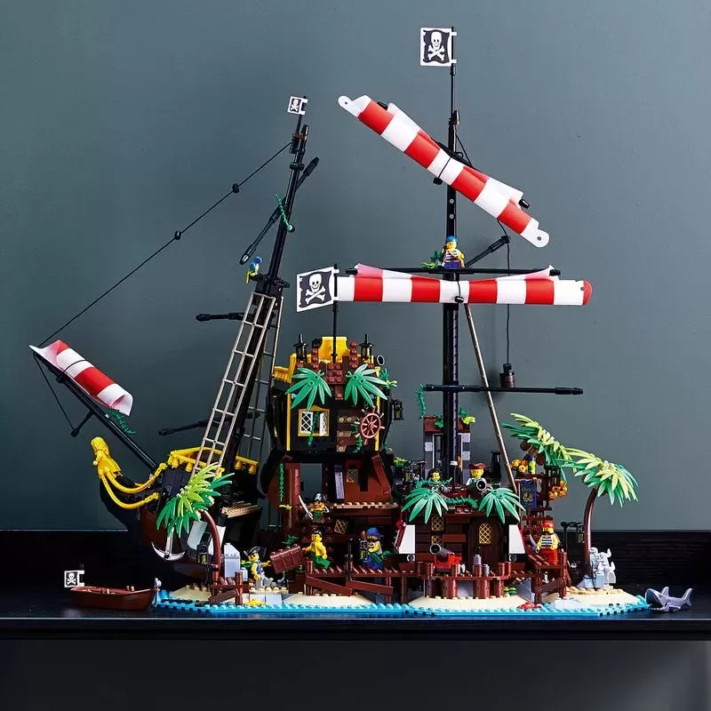 ? Build and play with or display this LEGO Ideas Pirates of Barracuda Bay (21322) shipwreck island model. The island can also be split in half and rearranged, revealing buried pirate treasure.