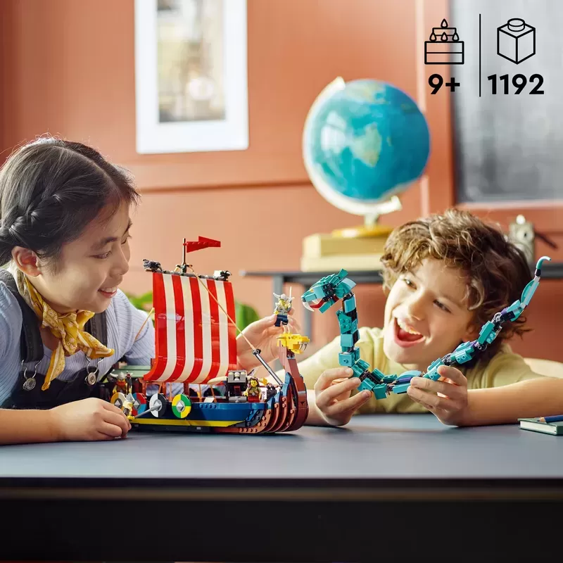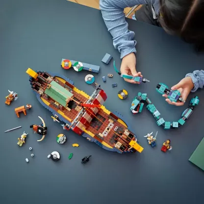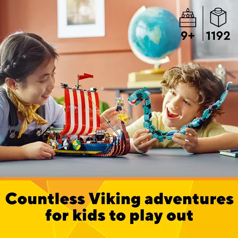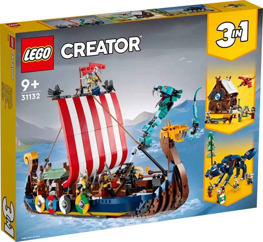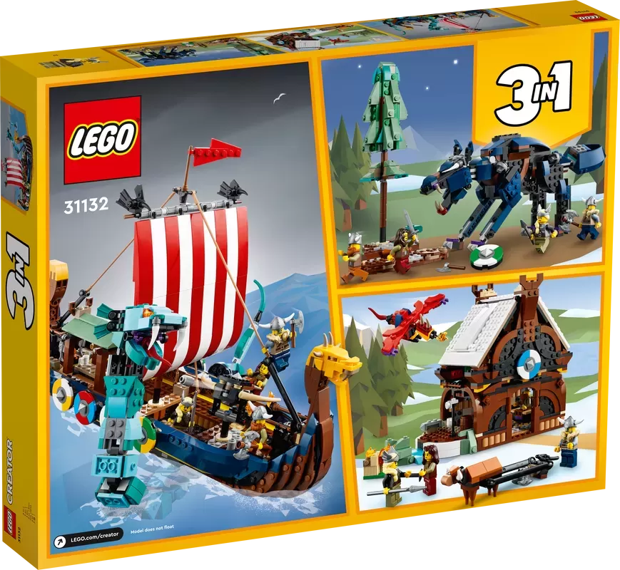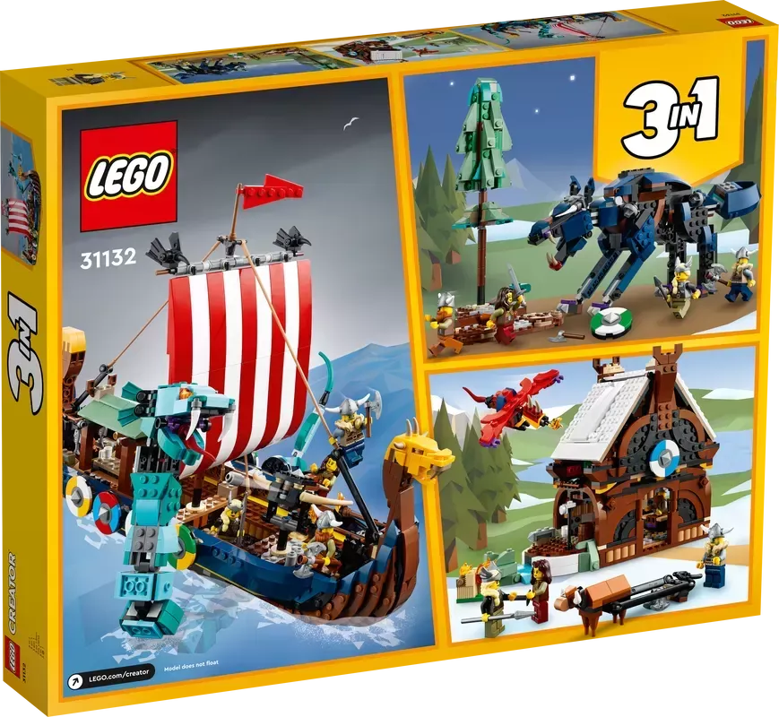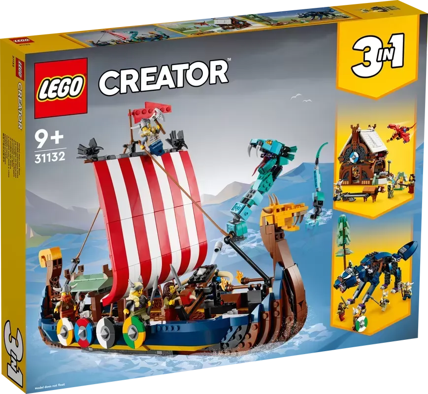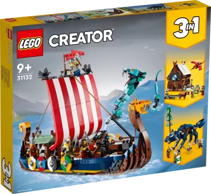 3 Viking toys in 1 set �C Kids will love this LEGO? Creator 3in1 Viking Ship and Midgard Serpent (31132) set, with a Viking Ship, a Viking house and a Fenris wolf toy