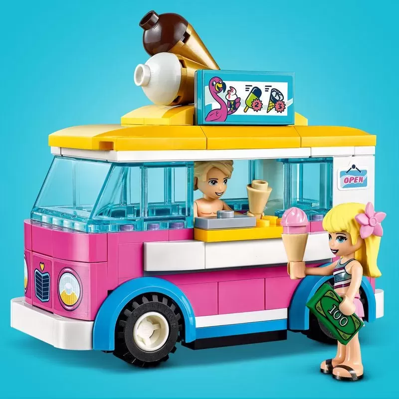 LEGO? Friends Stephanie, Emma and Olivia buildable mini-doll figures are along for the ride and Mason is on hand as a lifeguard. New-for-June-2020, Pinky the flamingo figure brings a splash of color.