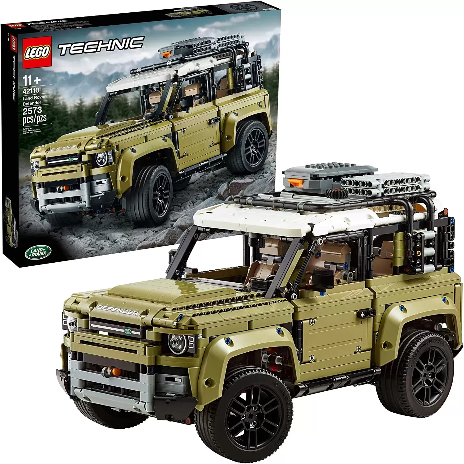 Experience world-leading vehicle design firsthand with this highly authentic and displayable 42110 LEGO? Technic? Land Rover Defender model. Developed in partnership with Land Rover, this impressive LEGO replica captures the vehicle's outstanding level of refinement with its clean, modern lines and sculpted surfaces, and comes with original-design rims with ground-gripping tires, plus a host of realistic features and functions. Opening doors allow access to an elaborate cabin with a working steering wheel, detailed dashboard and a new-for-October-2019 transmission system with 2 levers for engaging high or low gear ratios and a selector for changing gear - the most sophisticated LEGO Technic gearbox to date! The interior also features forward-folding rear seats that give visual access to the 4-speed sequential gearbox. And, the attention to detail doesn't end there. This awesome replica model also has an in-line 6-cylinder engine with moving pistons beneath the bonnet, working All Wheel Drive with 3 differentials, independent suspension on both axles and a working winch! You can even open the tail door with a turn of the rear-mounted spare wheel. Finished with a removable roof rack with storage box, pannier, ladder and traction mats, this impressive interpretation of the quintessential all-terrain vehicle has been designed to provide a truly immersive and rewarding building experience. The perfect gift for Land Rover enthusiasts and fans of classic collectible model cars.