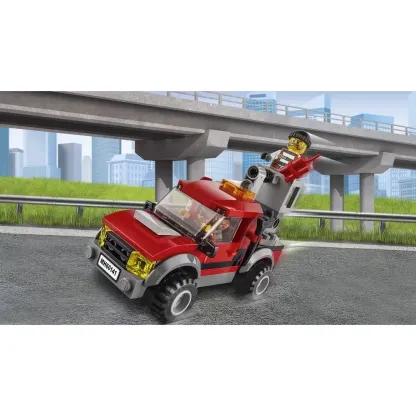 Raise the alarm! The crooks are trying to break their buddy out of jail but they've caught him by surprise, on the toilet! Extend the cherry picker and stuff the dynamite in the vent, then move before it blows. Hold out the crowbar for the crook to grab onto, and then get out of there! Help the police go after the crooks' truck with the pursuit car, motorbike and helicopter, and bring them all back to jail!