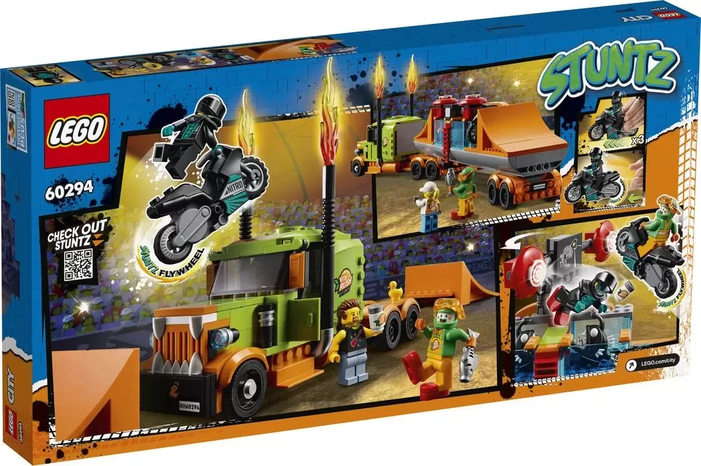 - Set the scene for action-packed play with this premium-quality LEGO? City Stunt Show Truck (60294) toy playset, including a flywheel-powered stunt bike and fun props for performing spectacular stunts.