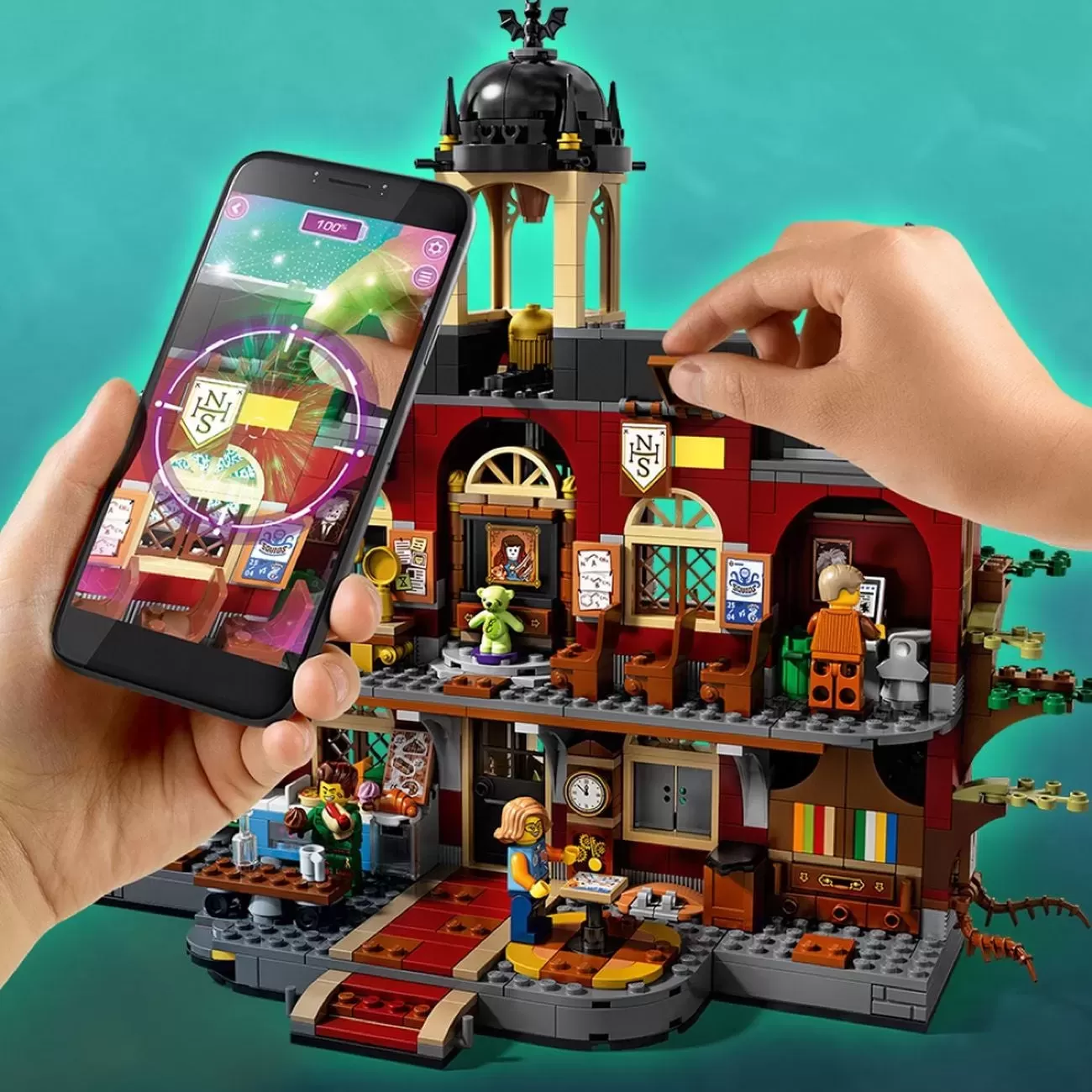 ? Download the LEGO? Hidden Side? app and point your phone at the Newbury Haunted High School to make this school set for kids come alive. Move the phone around to discover an ever-changing environment hidden around the model.