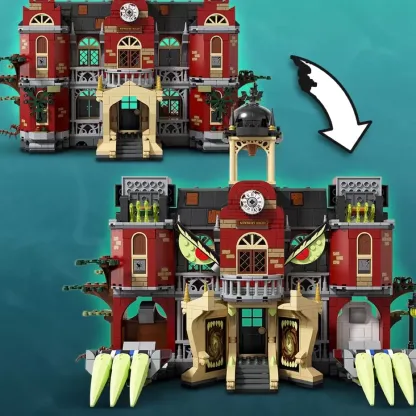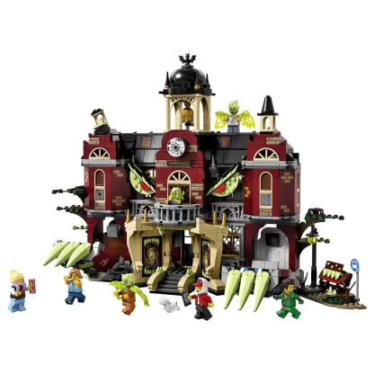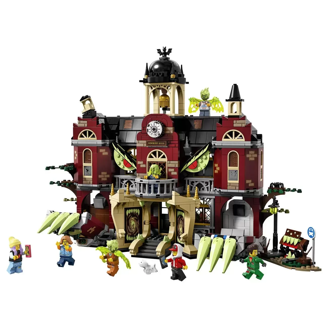 ? This school toy features a lot of fun play-starters, including a hidden chamber, bus station out front, computer lab, library, bathroom, chemistry room and bell tower. The entire school can change from normal to haunted.