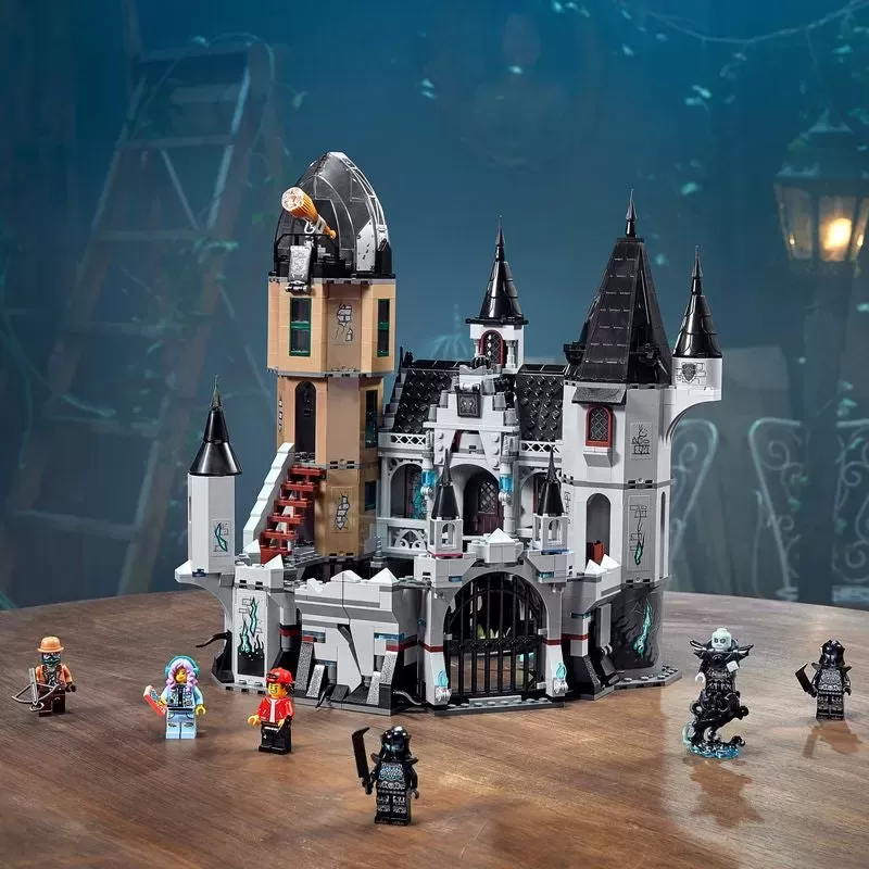 What's in the box? A digitally interactive LEGO Hidden Side castle model with lots of manual features including an accessible observatory tower, plus Jack, Parker, Vaughn, Nehmaar Reem and 2 Shadow-Walker minifigures.
