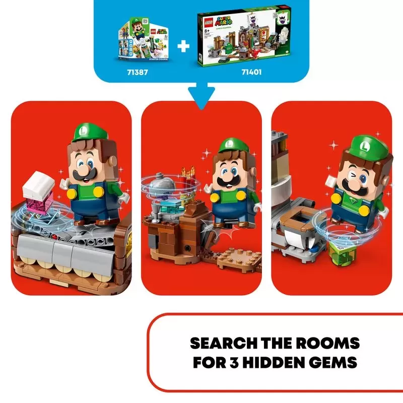 - Ghost battles and gem-hunting in Luigi��s Mansion? �C Add a brick-built mansion packed with challenges to kids�� LEGO? Super Mario? universe with the 71401 Luigi��s Mansion Haunt-and-Seek Expansion Set