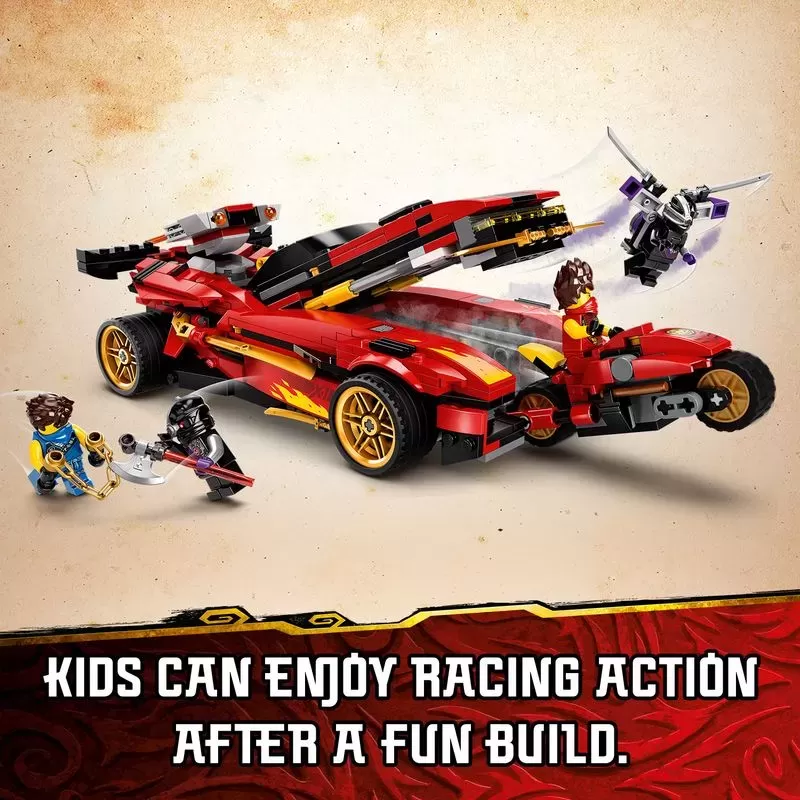 - LEGO? NINJAGO? X-1 Ninja Charger (71737) is a 2-in-1 modern update ninja vehicle with a shooting toy car and ninja motorcycle to give kids a world of exciting play possibilities.