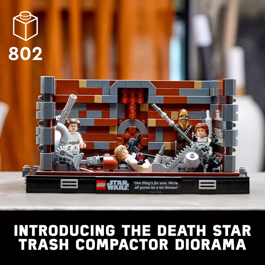 ? Authentic details �C Includes moving walls, a dianoga��s head, compactor control panel, plus a plaque with Han Solo��s ��One thing's for sure. We��re all gonna be a lot thinner.�� line