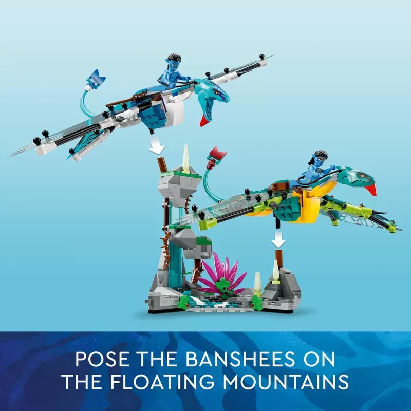 What��s inside �C This immersive LEGO? set includes Jake Sully and Neytiri minifigures, 2 buildable Banshee figures with posable foil wings, plus a buildable mountain scene with glow-in-the-dark pieces