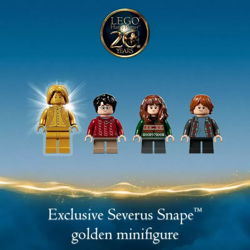 ? Includes an exclusive, golden Severus Snape? minifigure to celebrate 20 years of magic with LEGO? Harry Potter?. Also includes 3 random wizard card tiles for kids to collect (16 in total).