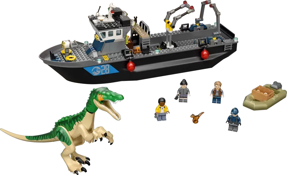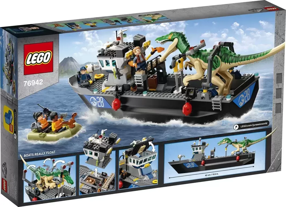 - Kids can role-play an exciting Baryonyx Dinosaur Boat Escape with this awesome LEGO? Jurassic World toy playset (76942), featuring a cool, buildable boat that floats �C even with a dinosaur on board!