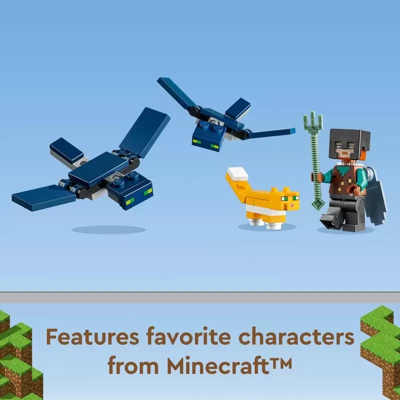 ? Includes a Pilot figure with elytra wings, netherite helmet, firework rocket and trident; 2 flying phantoms; an orange tabby cat; and lots of authentic accessories.