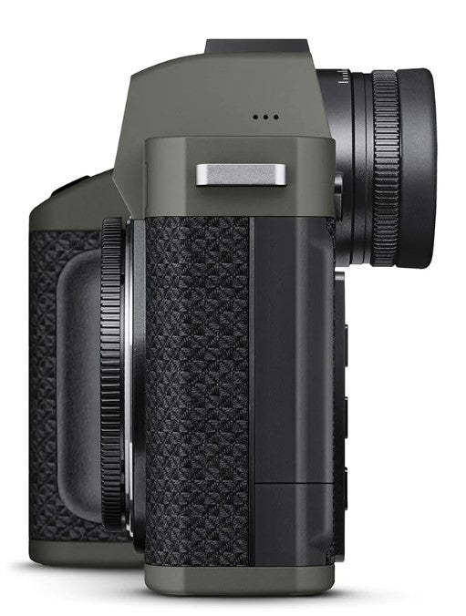 The SL2-S Reporter lacks a Leica logo on the front of the camera and no inscription on the top in order to provide you complete secrecy. The metal's matte, dark green surface is extremely scratch-resistant for increased longevity. Additionally, the monochromatic text makes sure that, for once, you blend in with the background.