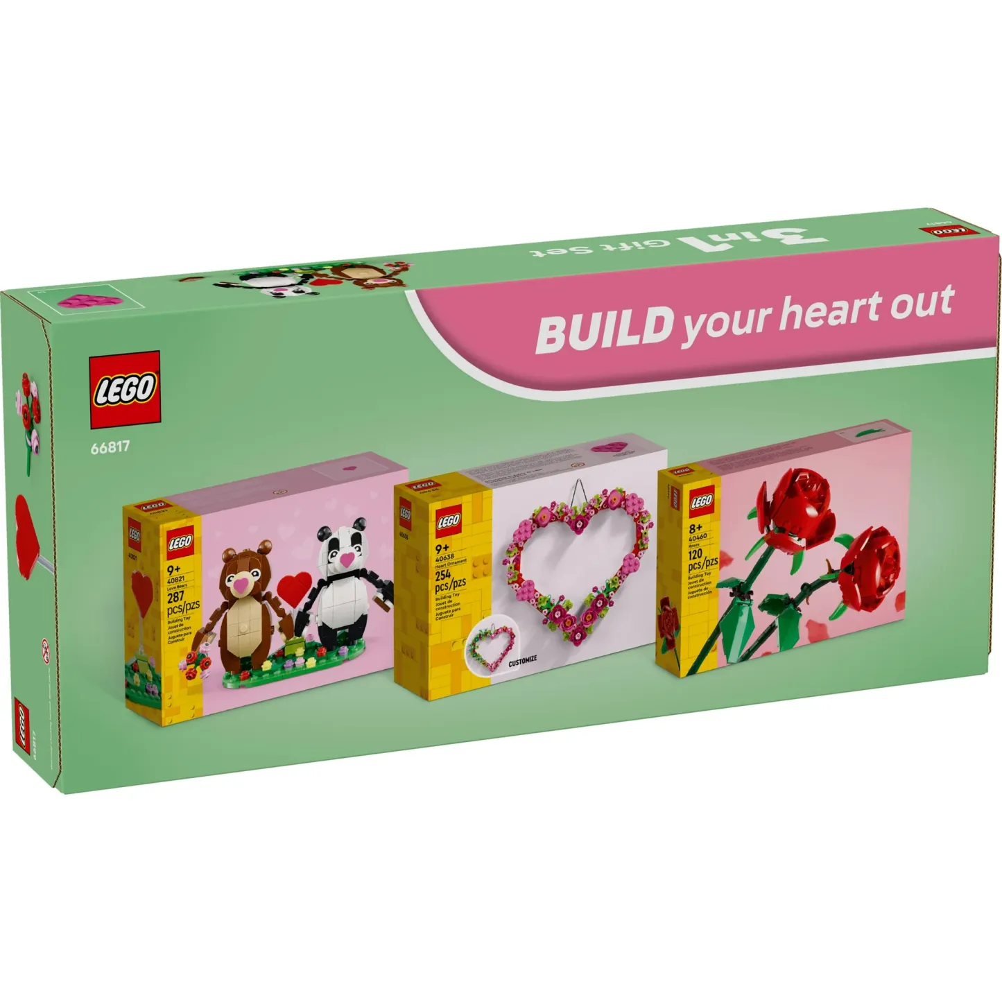 - 3 IN 1 CREATIVITY – Bundle includes a buildable pair of Roses (40460, 120 pcs), a customizable Heart Ornament (40638, 254 pcs), and two adorable Love Bears (40821, 287 pcs).