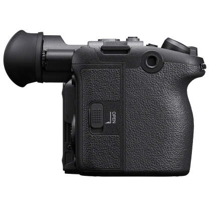 Keep focused on shooting even in bright or distracting environments, thanks to an OLED viewfinder with approximately 3.68 million dots. Magnification is 0.70x (50 mm lens, infinity focus, -1 m-1 dioptre), and the angle of view and eyepoint are optimized for video recording. The viewfinder itself can be rotated from 0° to +90° for easy viewing at just about any angle, and the eye cup can be removed or reversed left-to-right as necessary.