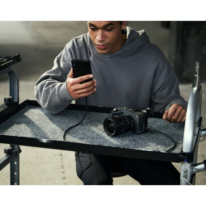 A high-capacity NP-FZ100 battery and effective power management provide up to 100 minutes of actual video time or up to 155 minutes of continuous shooting. For longer shooting times, continuous power can be supplied from a power adaptor or a mobile battery that supports USB Power Delivery (PD). The optional DC-C1 DC Coupler can supply stable power without occupying the camera’s USB Type-C® terminal.